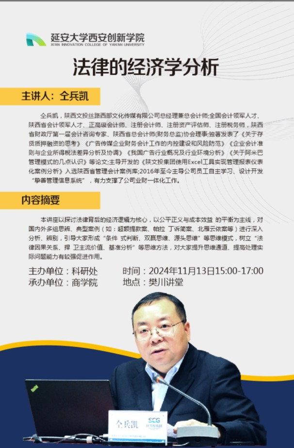 suncitygroup太阳集团特邀仝兵凯注册会计师作题为《法律的经济学分析》专题讲座